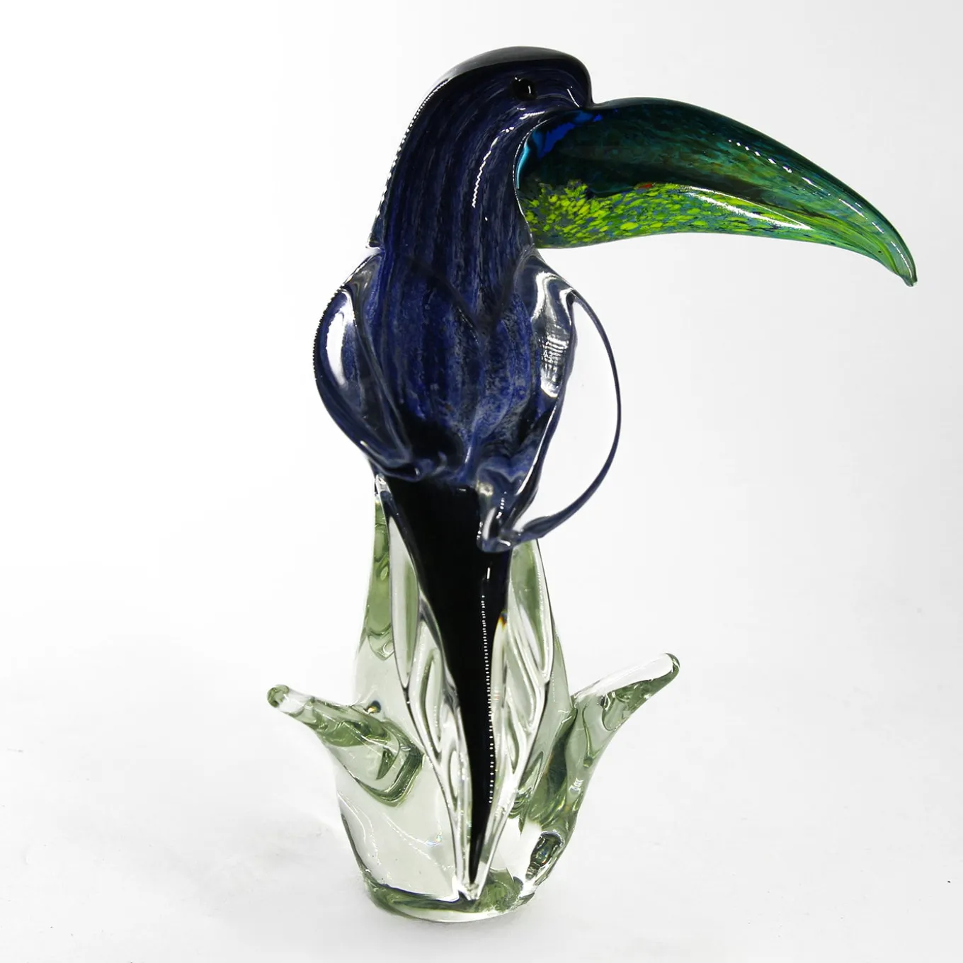This vibrant toucan sculpture, handcrafted from authentic Murano glass using traditional techniques, features transparent glass infused with green, yellow, blue, and other vibrant hues, creating an intricate and stunning pattern. Symbolizing boldness and individuality, the toucan adds a lively presence to any space. Its dynamic design and meticulous craftsmanship capture the beauty of nature, infusing sophistication and artistic flair into any interior.