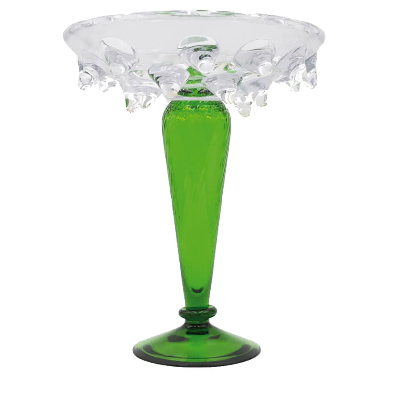 A daring juxtaposition of finishes and captivating textural effects are the elements recurring in the designs by Borek Sipek for Driade, and this stand is no exception. Striking in its elegant green-toned glass body, it also features a transparent bowl covered on the underside with spikes. Perfect for stylishly arranging cupcakes, some fruits, or a floral centerpiece for a more luxurious statement.