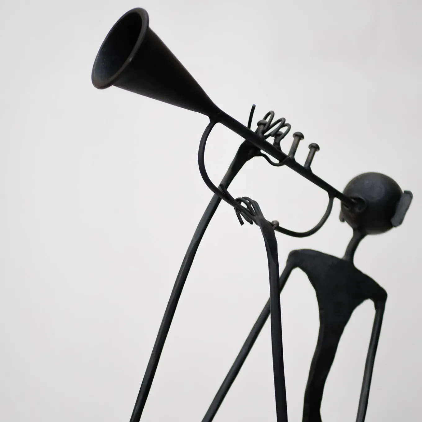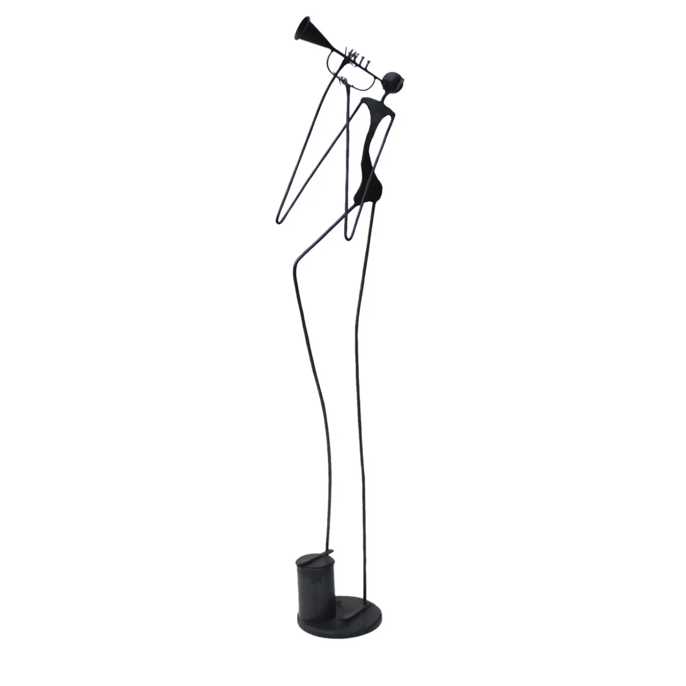 This flattering, anthropomorphic sculpture in wrought iron is a spiritual and concrete homage to jazz, expressing through dramatic and unproportioned volumes the genre’s characteristic elegance and grandeur. It depicts, in a stylized, visionary perspective, an ultra-slim trumpet player (called “trombettista” in Italian”) that plays his trumpet with faithful passion. Deftly handcrafted and enriched with a burnished finish, the design is the ideal gift for a music or contemporary art aficionado.