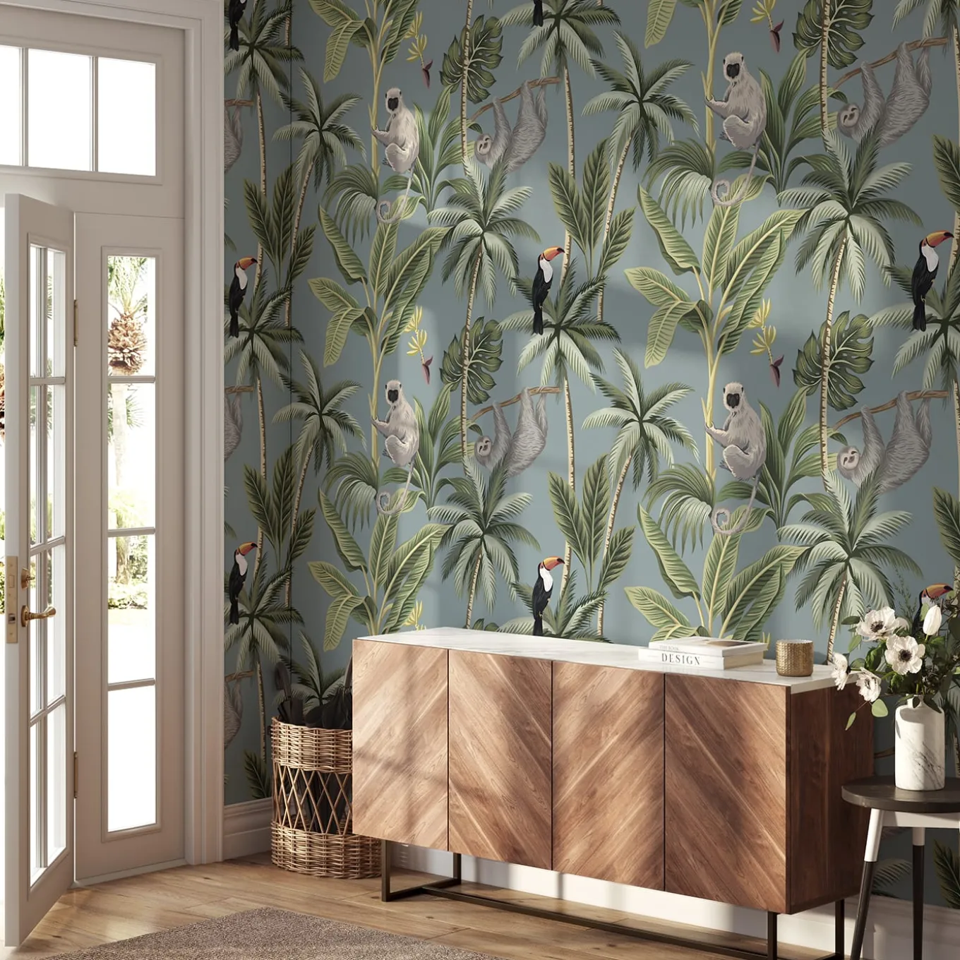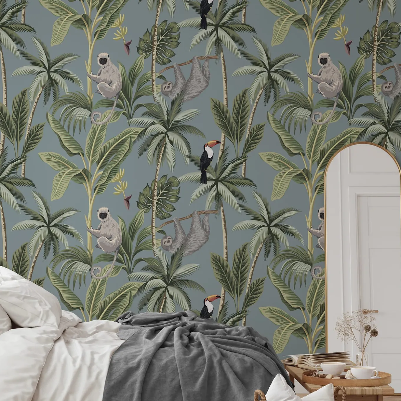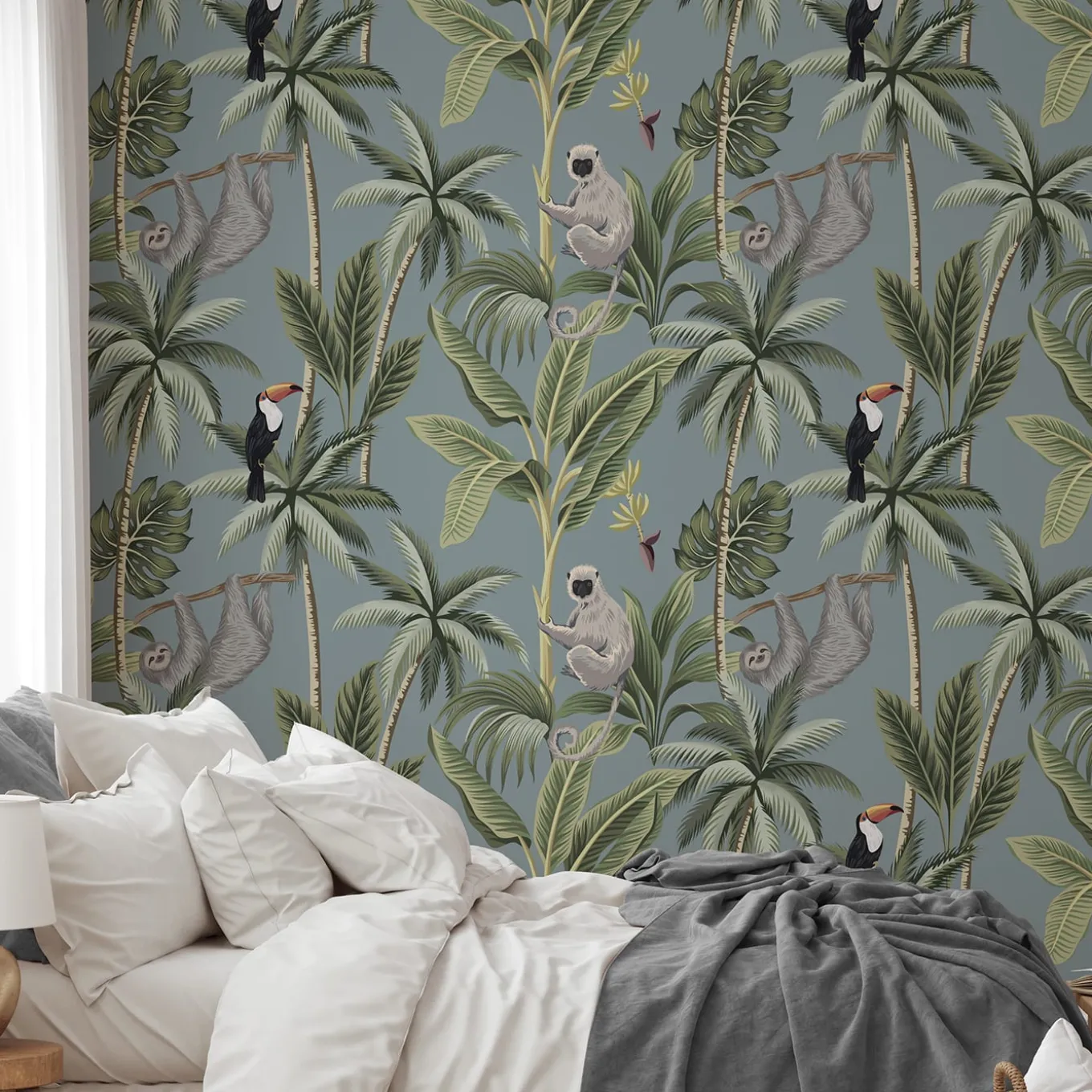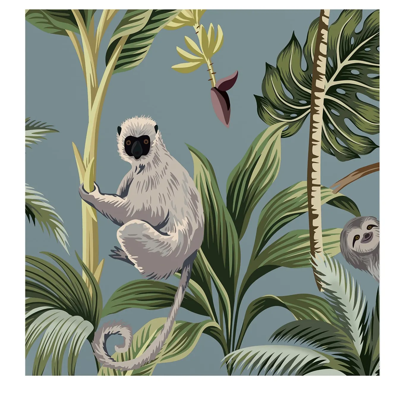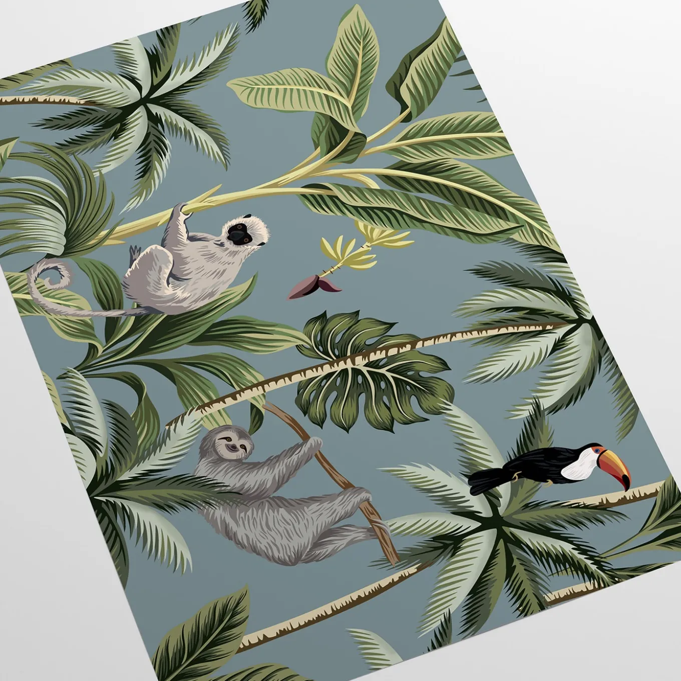 Ecological wallpaper, crafted from vegan water-based inks, designed and printed in Italy using the most advanced technologies. Versatile for walls, shelves, and furniture, this is the perfect design for adventure lovers who want to explore lush forests with monkeys, sloths, and toucans without leaving home. Instructions are included. The price refers to one package containing 8 sheets of premium wallpaper. Each sheet measures 27.5 x 39.4 inches (70 x 100 cm), for a total coverage of 59.2 sq. ft. (5 mq).