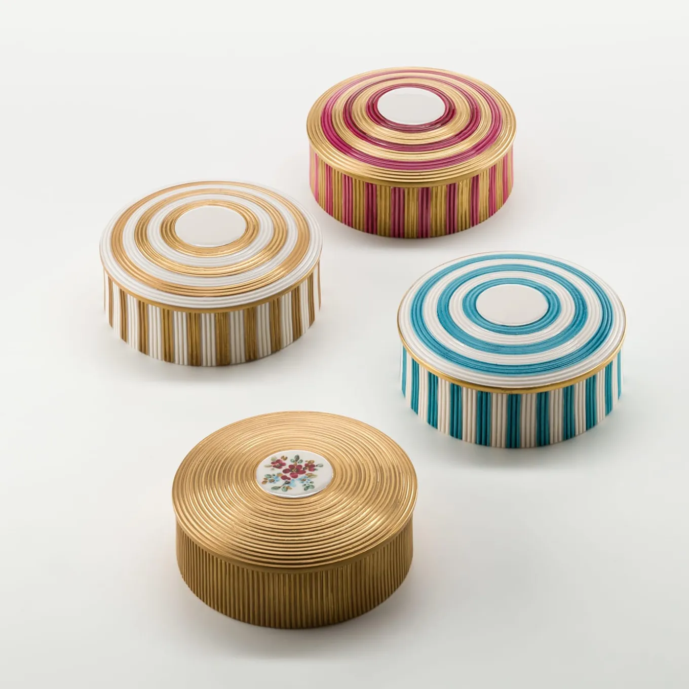 A play of subtle lines makes the belle epoque collection sophisticated and also timeless. This graceful item is an extremely versatile object suitable for functional choreography at your table or as a welcome gift for special occasions that will give style and elegance to any room in the house. Each color, chosen with care, is expertly hand-painted by our master craftsmen and edged in 24-carat gold.