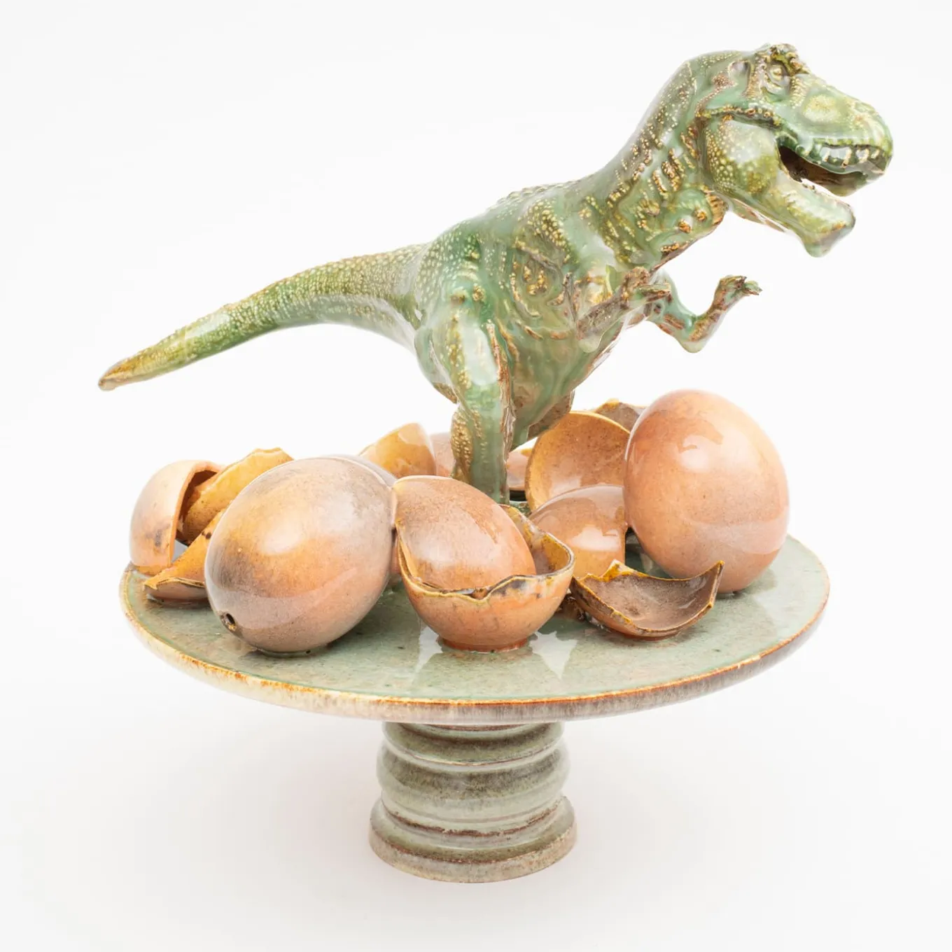 This allegorical centerpiece is part of the Metafore Contemporanee collection. Scenic and rare object capable of adapting to both a contemporary and traditional style; the conception of this artifact looks with irony at the late Renaissance mise en place, transfiguring and updating its function. The realization of the sculpture sees a phase of modeling, a first firing and multi-level enameling; the second firing gives the work a precious finish with a wonderfully unexpected result.