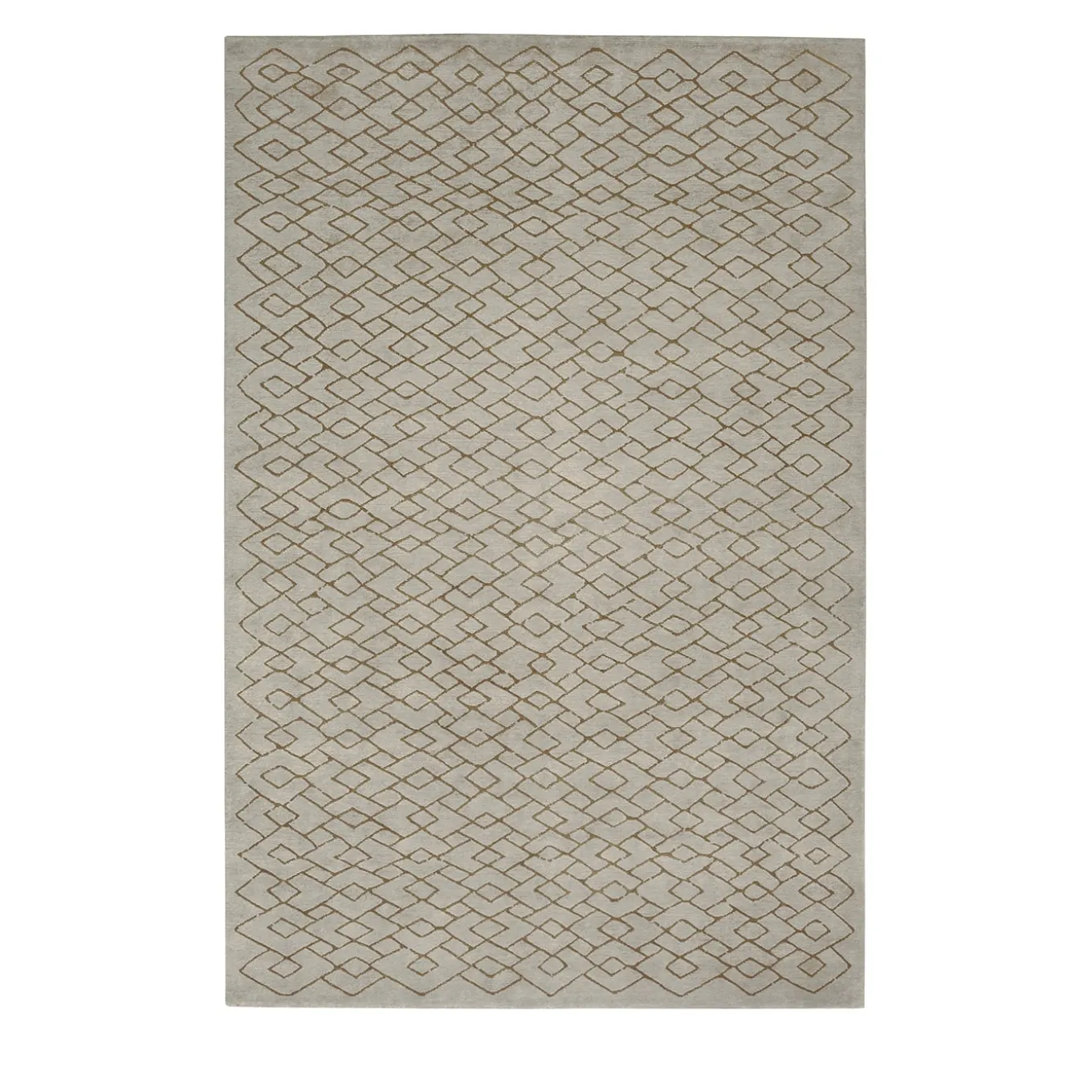 Sophisticated and modern, this hand-knotted 80-knot rug is made in Nepal using the finest blend of wool and silk. Its light grey background is adorned with an elegant geometric pattern that makes it ideal for any decor. The standard sizes are 170×240, 200×250, 200×300, 220×300, 250×300, 250×350, 300×400, 350×420, 350 x500, 400×600 cm for the rectangular rug and 250×250, 300×300, 400×400 cm for the square one. Custom sizes, colors, and materials can be ordered (please ask the concierge for prices).