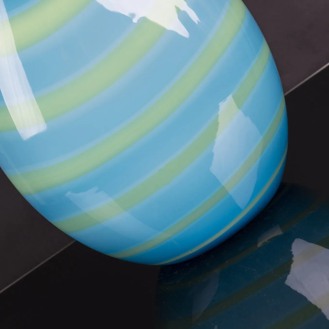 Part of a series that recreates the colors and delicate movements of a calm seabed, this splendid vase boasts a striking turquoise hue enriched with green-yellow stripes, reminiscent of seaweed tones. A unique piece of contemporary decor, it is entirely handcrafted of glass.