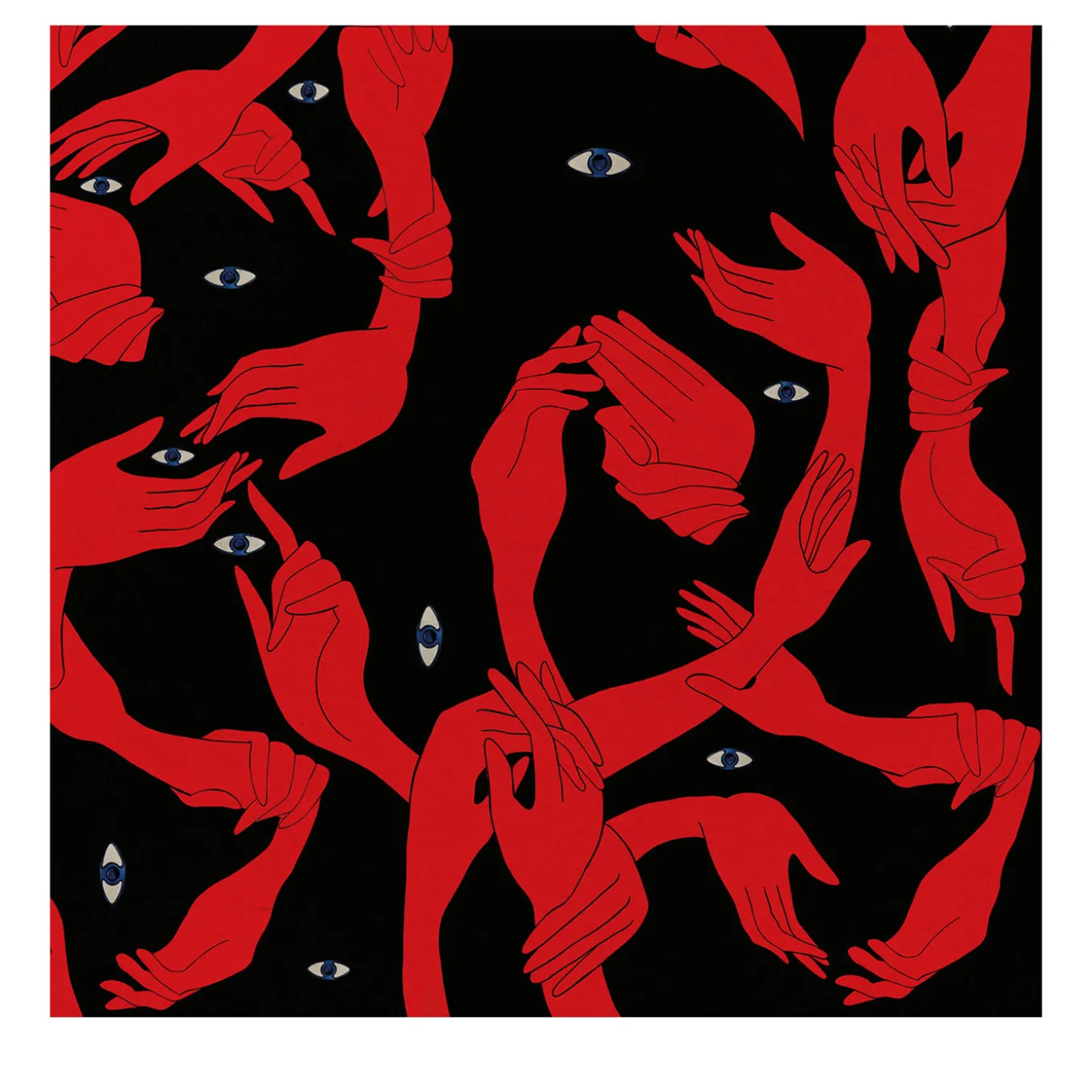 Here a myriad of hands interweave, giving life to a perpetual motion, which shapes a visionary world. Forms and colors play tricks on the eyes. The subjects are hands. Faces. The infinite metamorphosis is a constant surprise. There are so many points of view we can’t really know which one is reflecting reality. Mixtures of shades and graphic drawings are the stylistic base of this eclectic color mix and contrasting texture. The result is unprecedented surrealism.