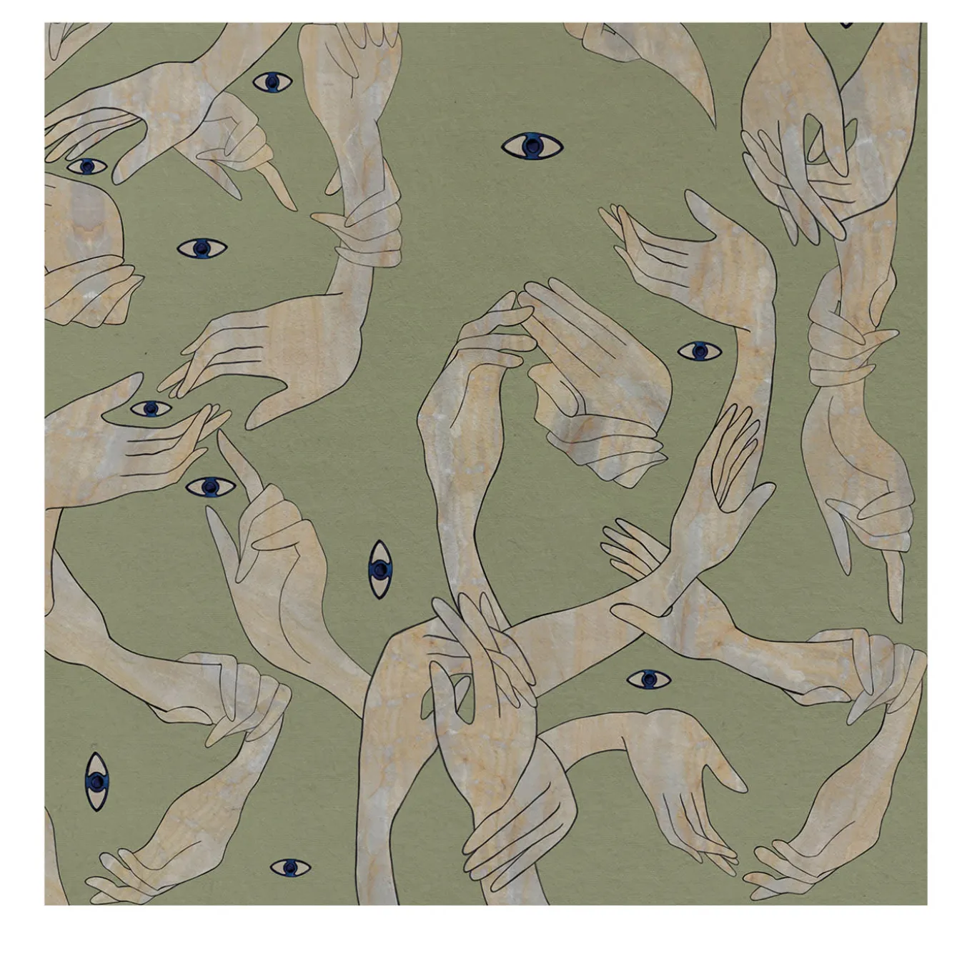 Here a myriad of hands interweave, giving life to a perpetual motion, which shapes a visionary world. Forms and colors play tricks on the eyes. The subjects are hands. Faces. The infinite metamorphosis is a constant surprise. There are so many points of view we can’t really know which one is reflecting reality. Mixtures of shades and graphic drawings are the stylistic base of this eclectic color mix and contrasting texture. The result is unprecedented surrealism.