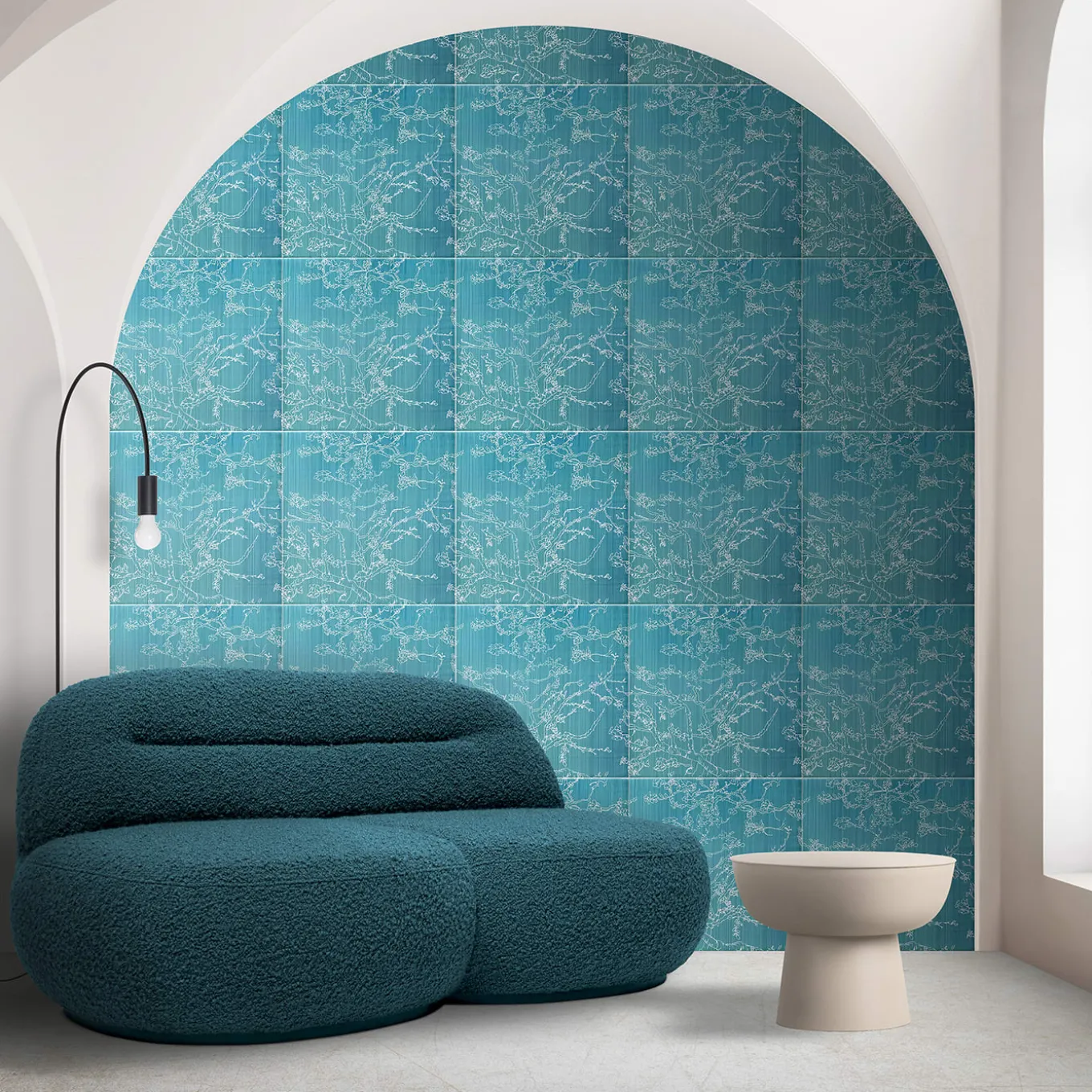 A contemporary take on the “Almond Blossom” masterpiece by Vincent van Gogh, this ceramic tile belongs to a sophisticated series developed in collaboration with the Van Gogh Museum in Amsterdam. Twigs of an almond tree in blossom emerge luminous and delicate against the teal backdrop, a testament to artisan mastery each piece flaunts alongside its poetic artistic inspiration. The indicated price is per square meter.