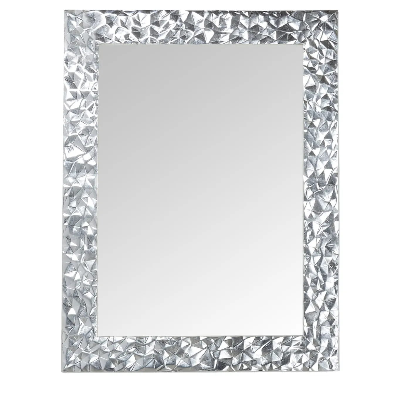 A sublime accent piece to enliven modern homes, this opulent rectangular wall mirror boasts a stylish fir frame, marked by a hypnotizing geometric texture that is deftly carved by hand and coated in silver leaf. The mirror enclosed within is made of fine crystal and measures 4mm-thick in thickness. The piece can be anchored to walls both horizontally or vertically, alike.