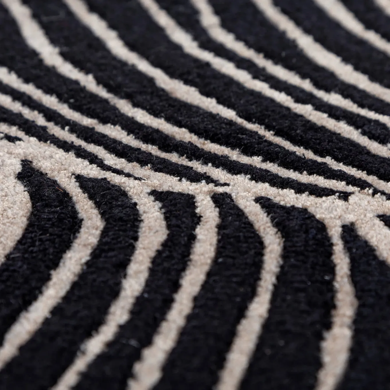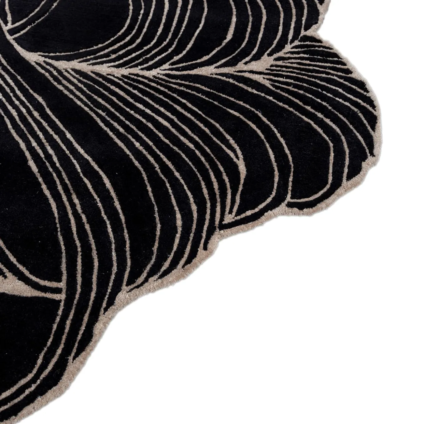 This exquisite hand-tufted rug from our Infini collection blends 60% viscose, 30% wool, and 10% cotton, exuding luxury and comfort. The intricate lines and curves, inspired by nature’s forms, create a captivating visual effect. Its blooming irregular shape adds a dynamic element, while the plush texture invites indulgence. The black and white hues lend timeless appeal, making it versatile for various interior styles. Available in diverse colors, shapes, and sizes. Hand-knotted in India.