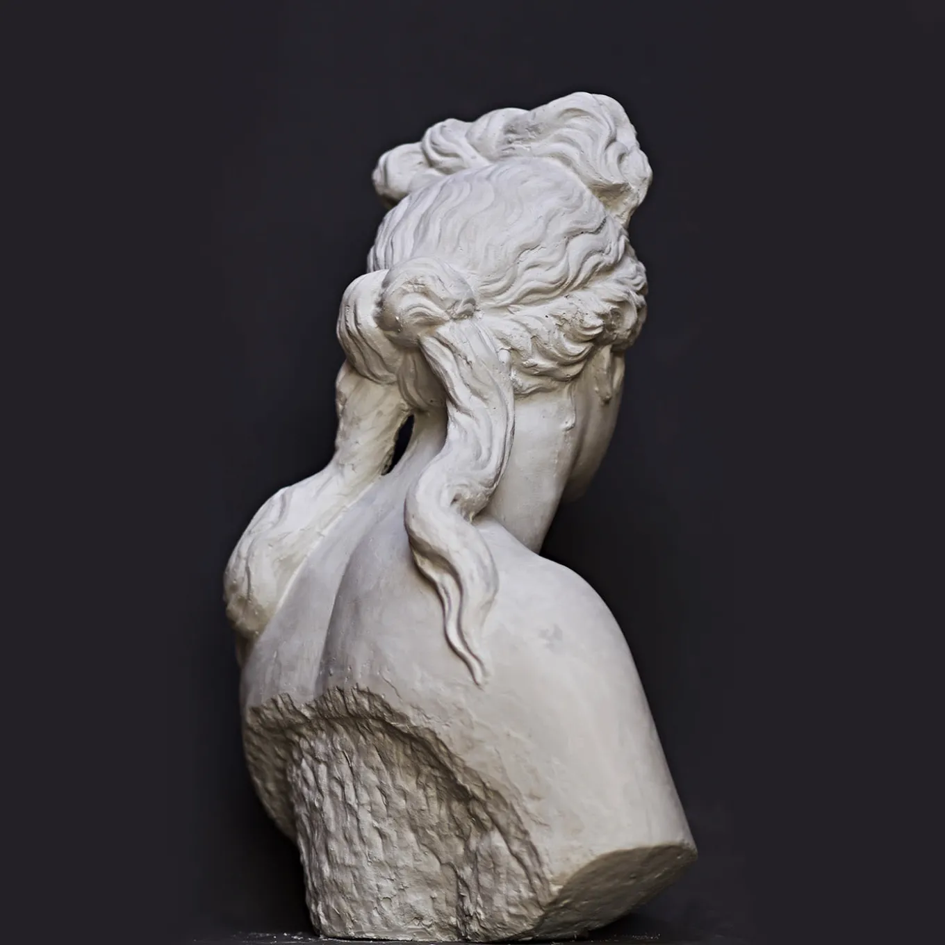 A detail from the renowned marble masterpiece Venere Capitolina dating back to the 2nd century B.C.E. currently housed in the Musei Capitolini in Rome, this bust is a faithful reproduction of unbelievable charm. Goddess Venus is depicted with her hair tied in an intricate hairstyle rich in braids with locks falling on her head and neck. It is a singular piece entirely crafted by hand in Florence.