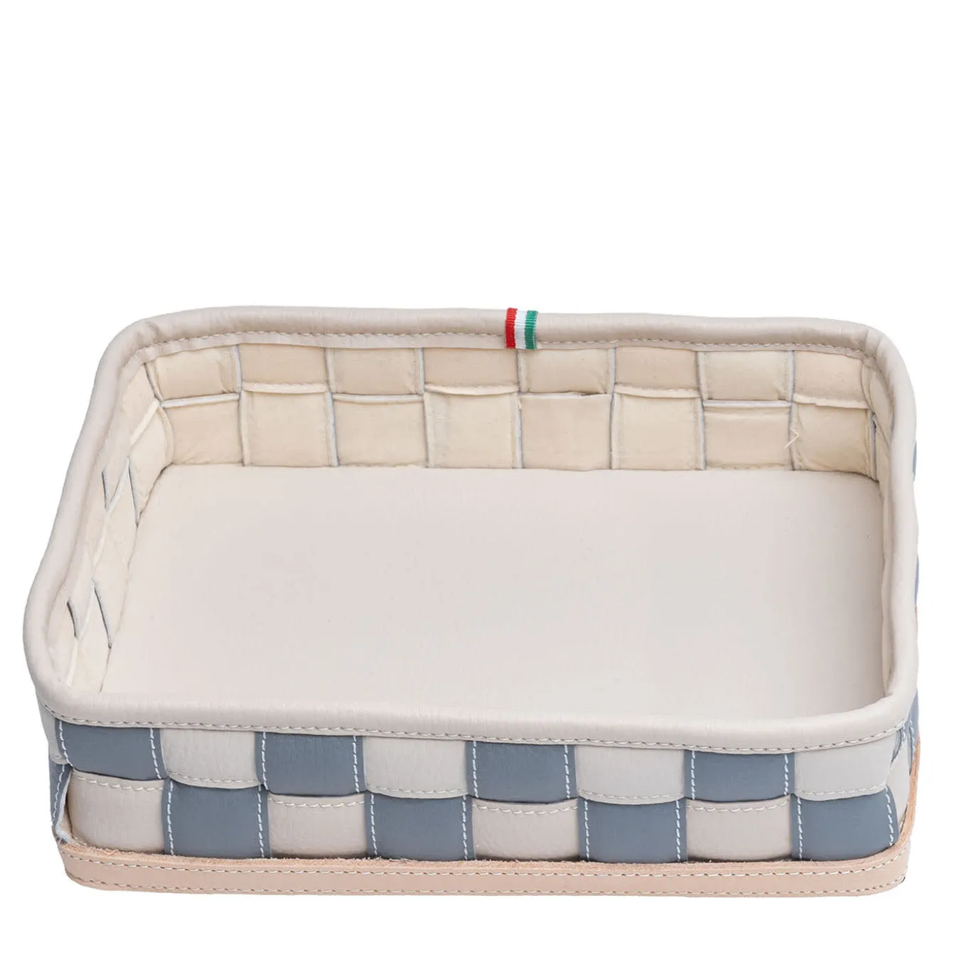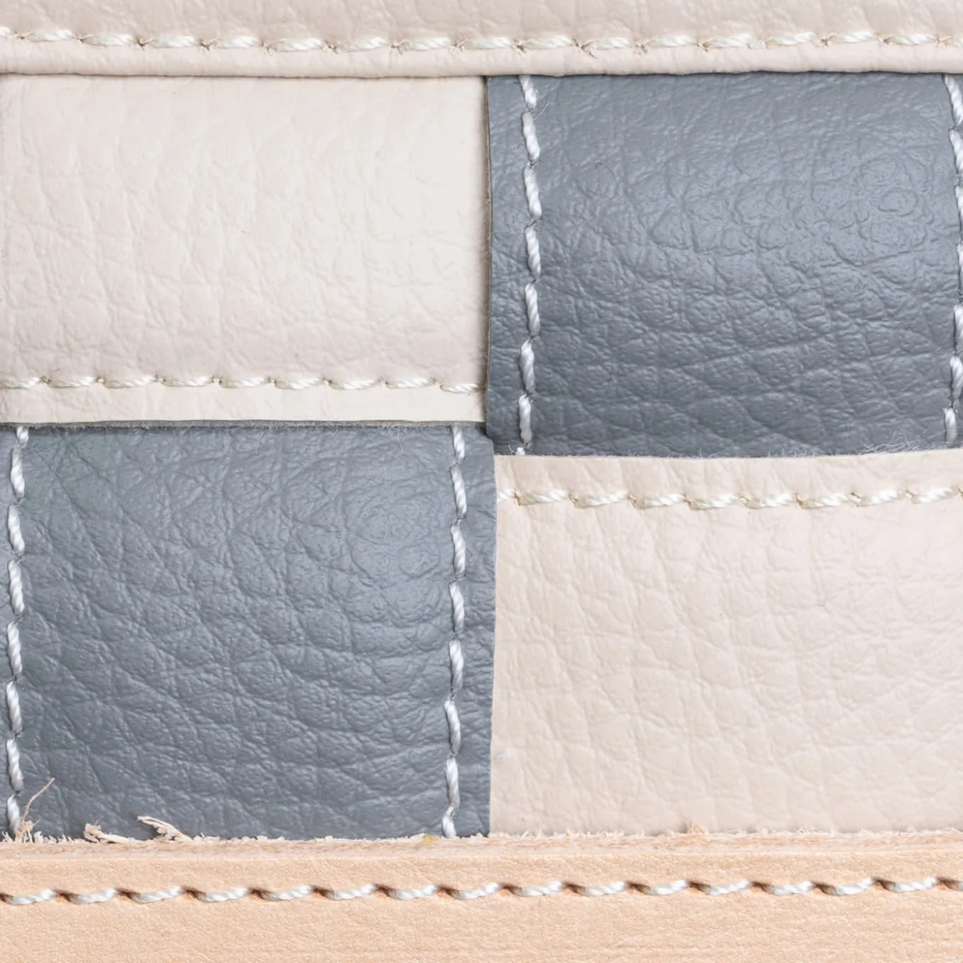 The freshness of a gray-and-cream color scheme meets the charm of sartorial design in this exclusive vide-poche, a spot-on addition to entryway consoles for gathering keys and coins. Achieved from the patient knotting of faux leather bands, its check-like look simply demands attention while a pleasant tactile feel is owed to the intertwined texture. Impeccable stability is ensured by the inner rigid bottom.