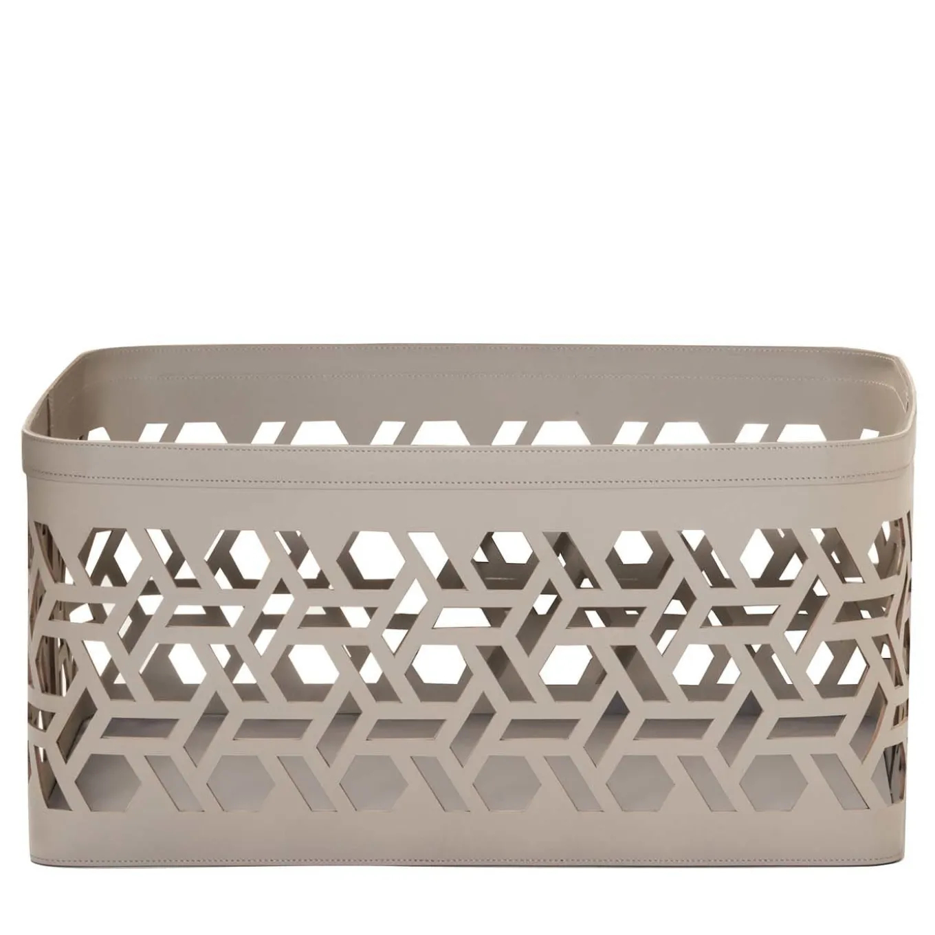 Vienna 16 is a rectangular basket perfect for everyday use. The traditional Vienna weaving style creates a graphic pattern with the raw-cut Tecnocuoio. Made with the finest regenerated reinforced leather structure with water-resistant and UV-resistant finish, it is ideal for laundry, towels, magazines, pillows or everyday objects and features a non-slip waterproof rubber base.