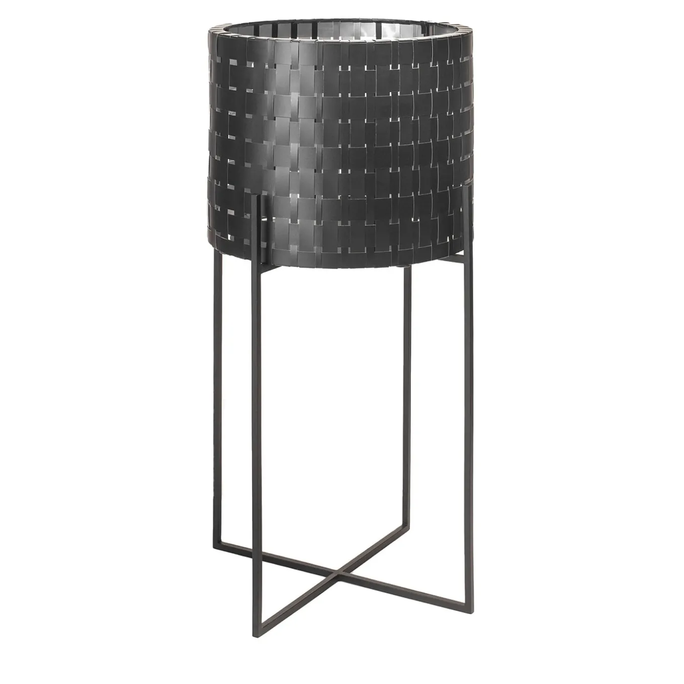 Part of the Vitis Nexum series named after the Latin word for vine, this cachepot is distinguished by a singular hand-woven body in recycled metal. The iconic yet simple design boasts a total black (Abatellis) color and it is supported with an external structure in textured black iron. Customizable in size and color, it is a one-off design of unprecedented style. Please consult the Artemest catalog for customizations.