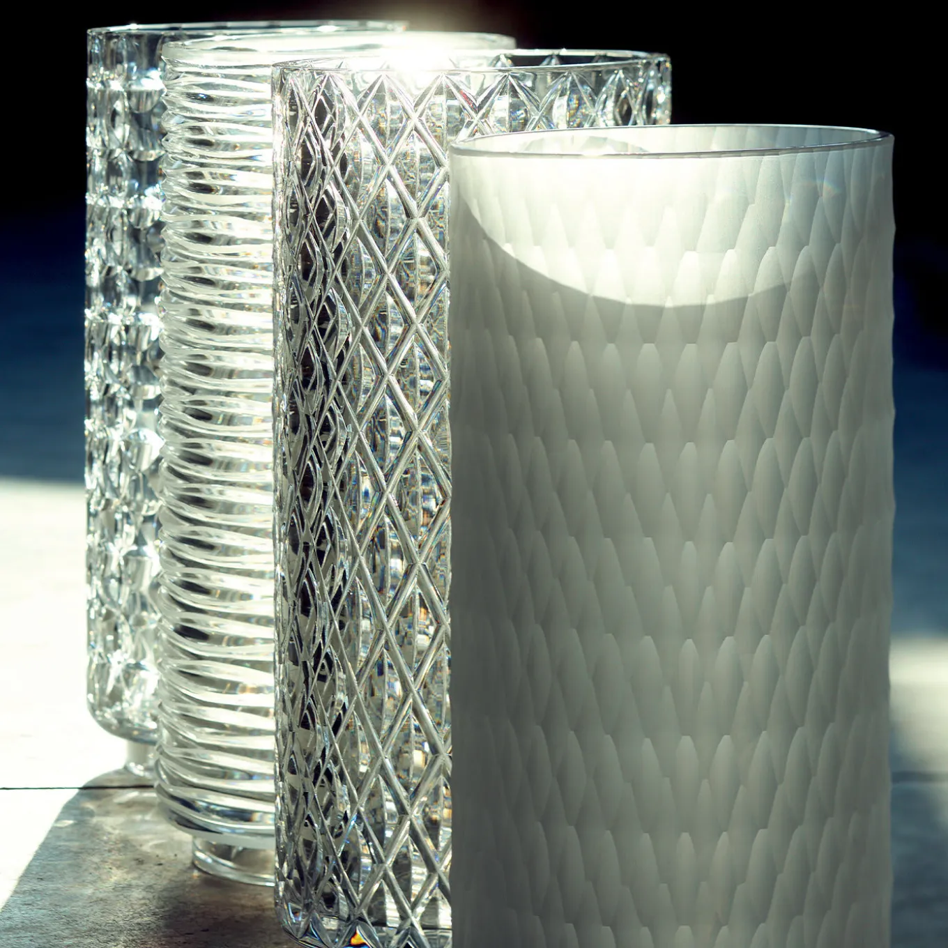 A simple but graceful vase, iconic thanks to its three-dimensional wave pattern that alternates between opacity and transparency. It is the result of an in-depth design combined with excellent craftsmanship, in fact, it was made only using Pb24% Italian hand-cut crystal. It is a sophisticated touch and a delicate addition of order that any room would benefit from.