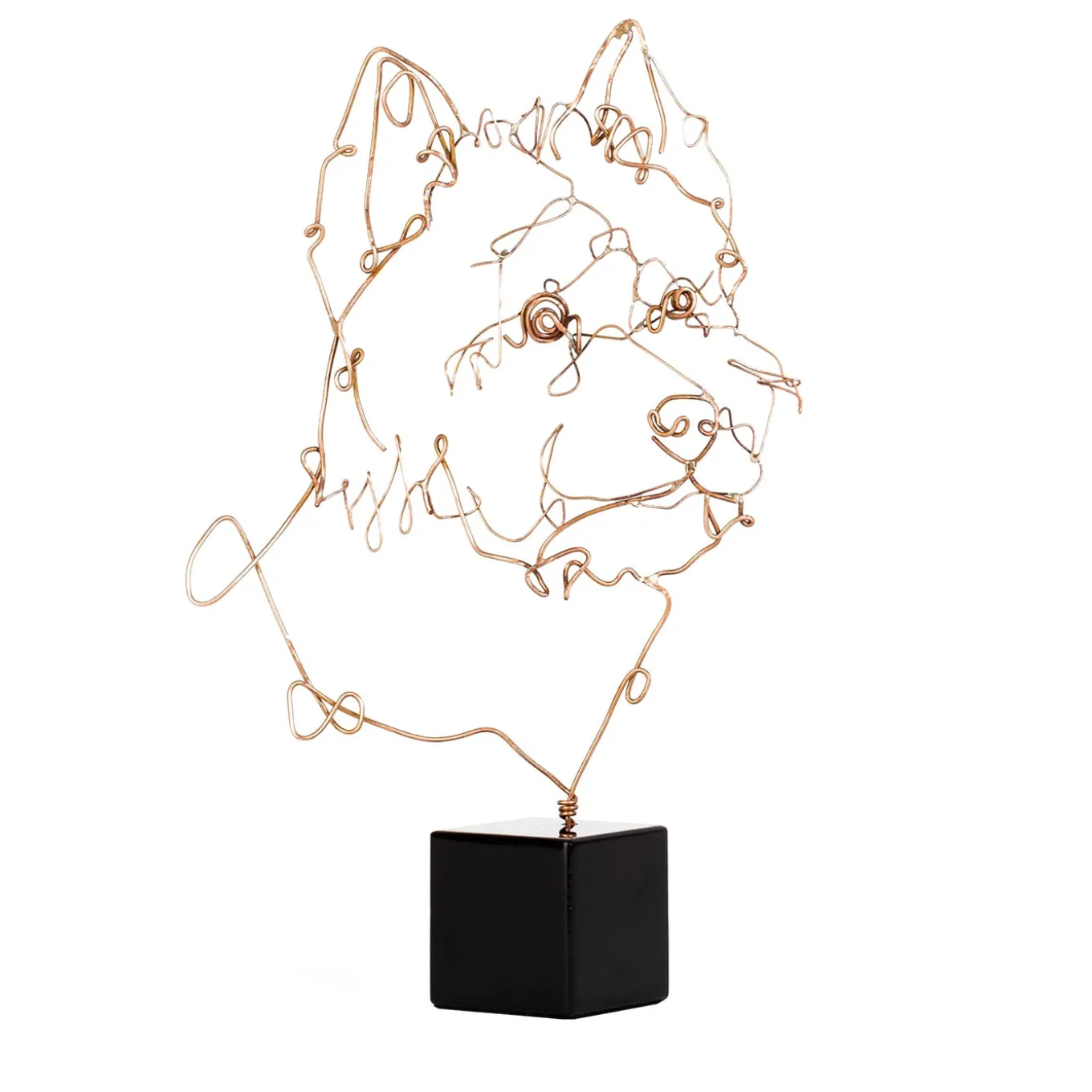 A stupendous depiction of a West Highland White Terrier, this statuette can be customized with a portrait of your dog, or any other dog breed. A singular gift for an animal lover, it is deftly handmade of bronze metal wire, supported with a polished black cubed base. Other 69 dog breeds available, please contact the Concierge for more information and customization options.