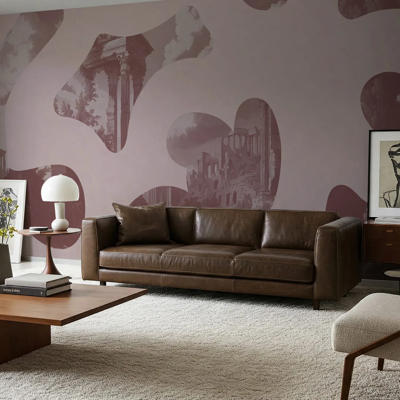 This wallpaper merges historical elements with contemporary abstraction through a refined maxi-outline camouflage design. Scenes inspired by classical ruins subtly emerge within soft tonal fragments, creating a quiet, melancholic atmosphere where faded grandeur intersects modern aesthetics. Printed on fine art wallpaper with a matte drawing paper effect, this eco-friendly, FSC-certified material enhances texture and depth while ensuring environmental responsibility. Price indicated per square meter. Also offered on canvas texture. For further information please contact the Concierge. Design by Magnus Gjoen.