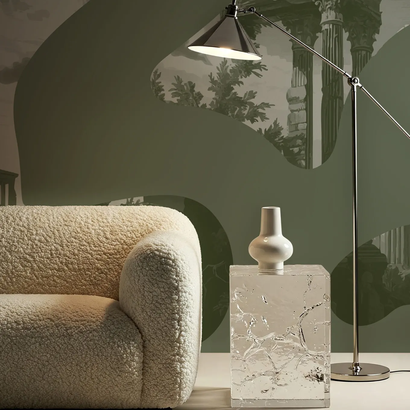 Whispers of Forgotten Past wallpaper features a refined maxi-outline camouflage design inspired by Piranesi’s Roman ruins, blending historical imagery with modern abstraction. Printed on eco-friendly fine art wallpaper with a matte drawing paper texture, it offers a high-quality visual and tactile experience. Certified FSC and Greenguard Gold, this wallpaper evokes a subtle, melancholic atmosphere through its tonal landscape, part of Spazio Miscellanea by MaVoix VOL II. Price is per square meter. Also available on Canvas wallpaper. For further information please contact the Concierge. Design by Magnus Gjoen.