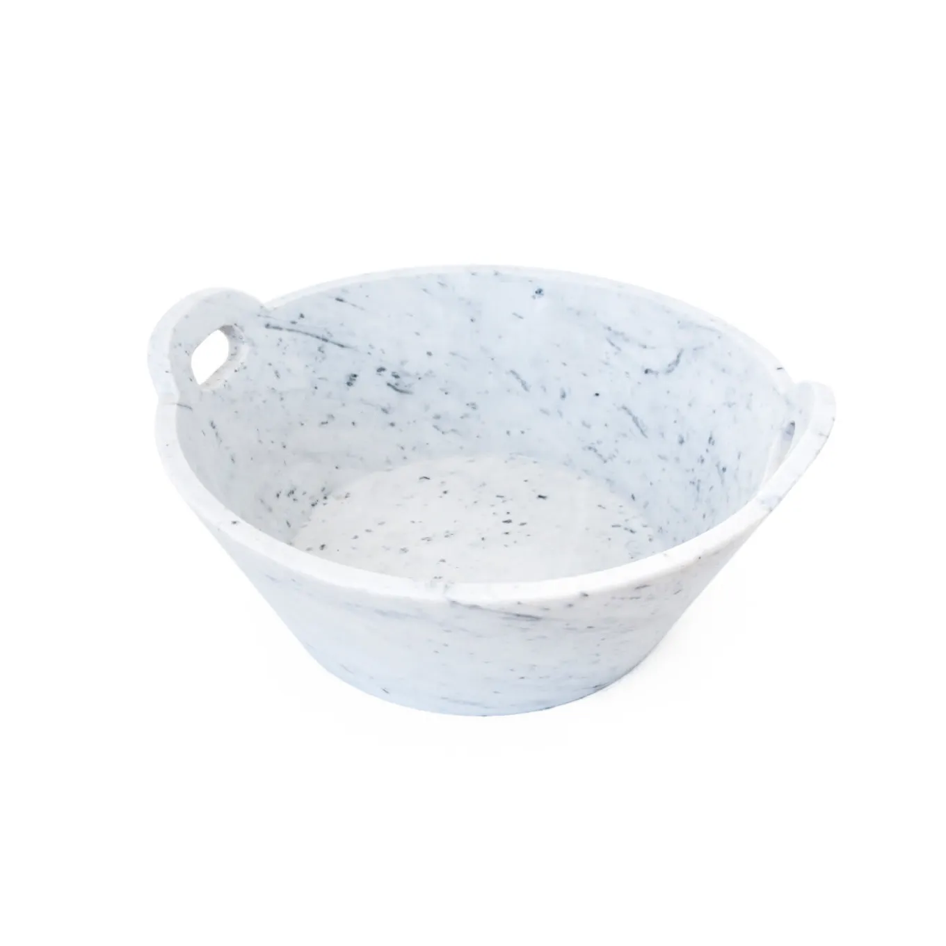 Fashioned of prized white Carrara marble, this luminous basket reinterprets the design traditionally associated with wooden basketworks. Its versatile and wide silhouette makes it ideal as a fruit bowl, an ornamental planter, or as an original vase. Any variation in veining from the picture is to be expected due to the artisan nature of the design, which is handcrafted by skilled artisans.