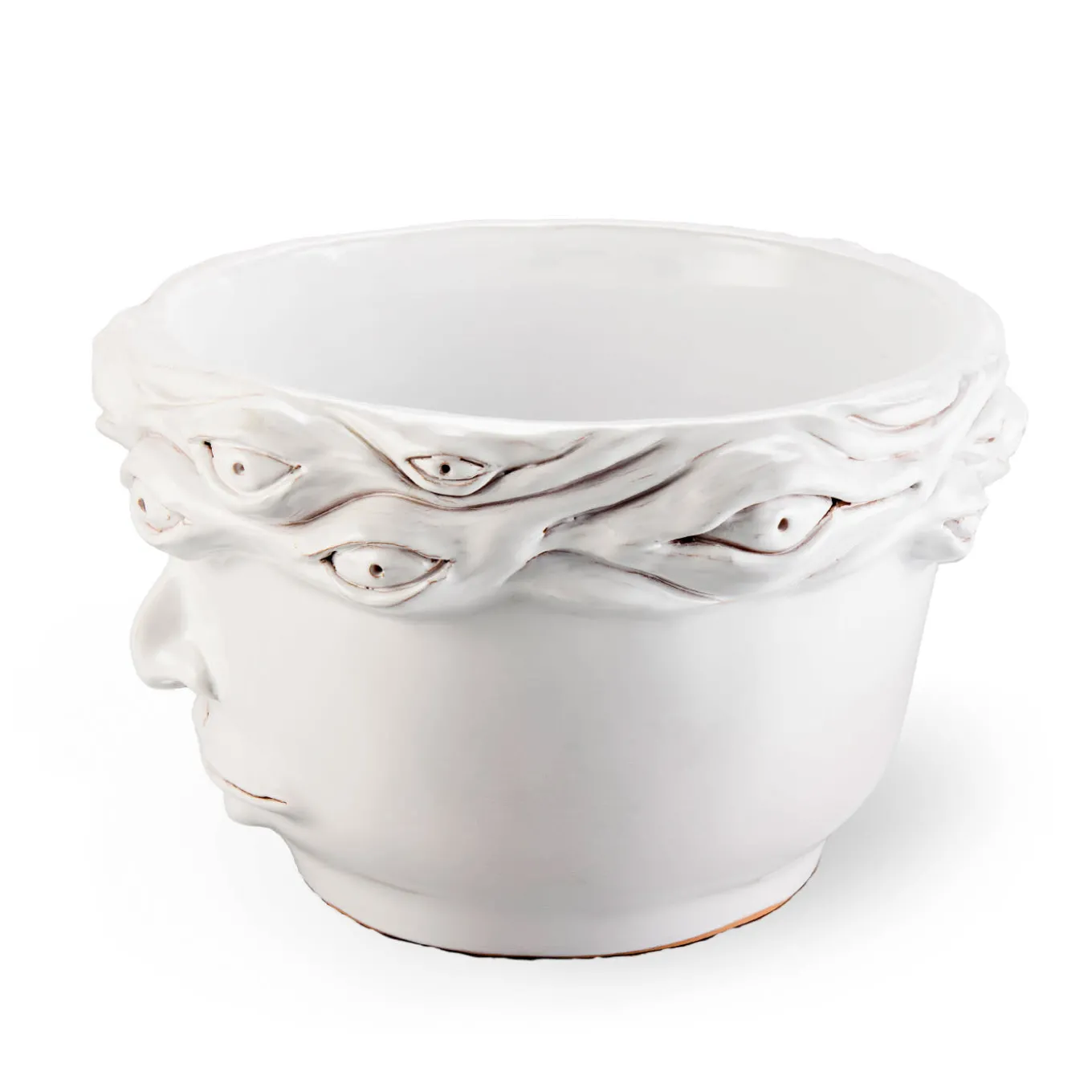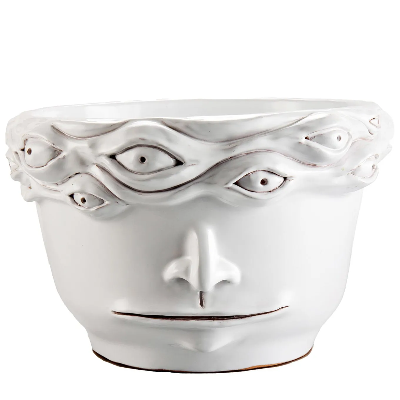 This Eye Freaklab Vase is made entirely by hand with the lathe and modeling technique. Starting from the clay, the piece is dried and fired in the kiln, then decorated with non-toxic glazes, colors, and crystalline for ceramics. Each piece is unique and completely handmade. It can be used as a flower holder, a plant holder, or as a sculpture. The piece can be customized, please contact the Concierge for further information and options.
