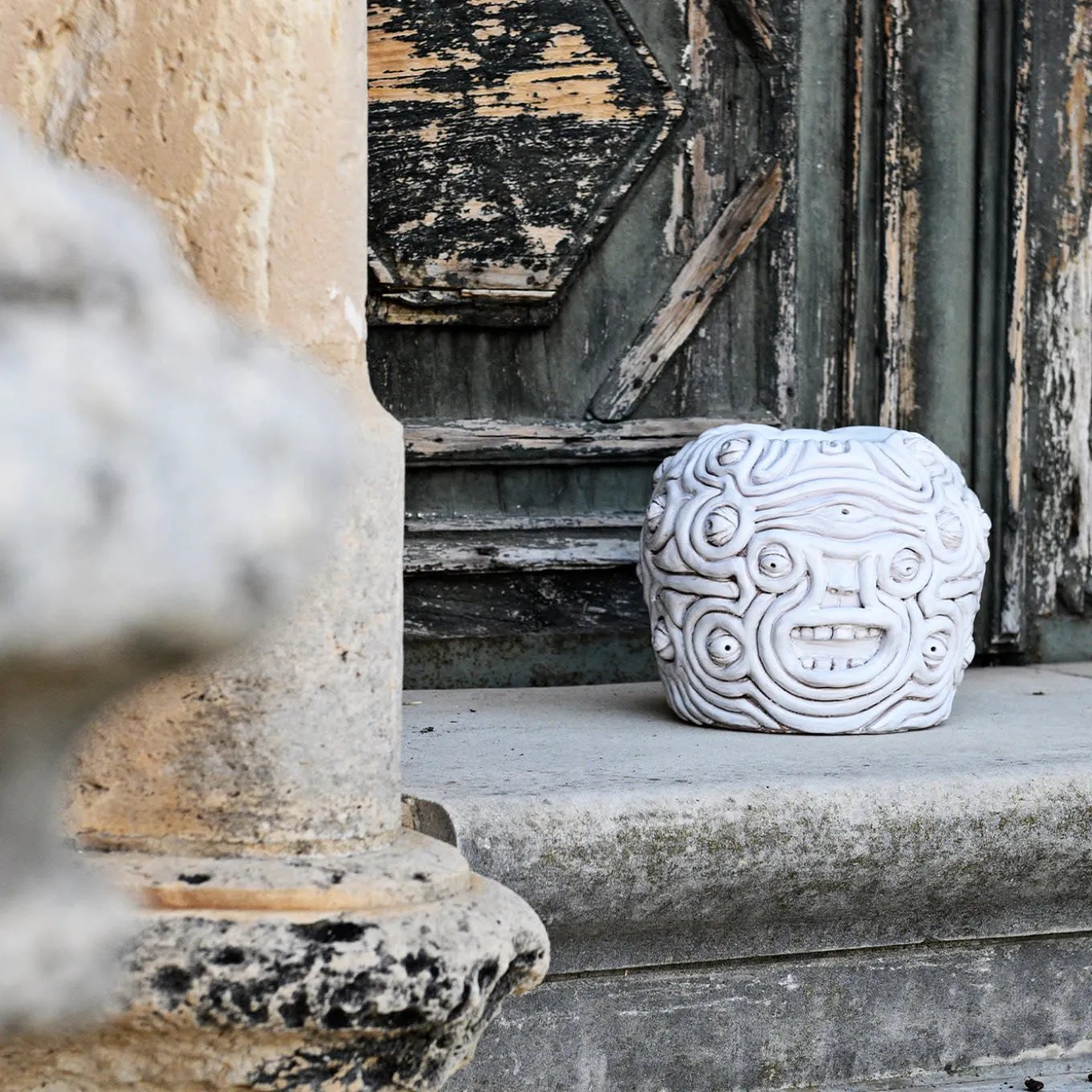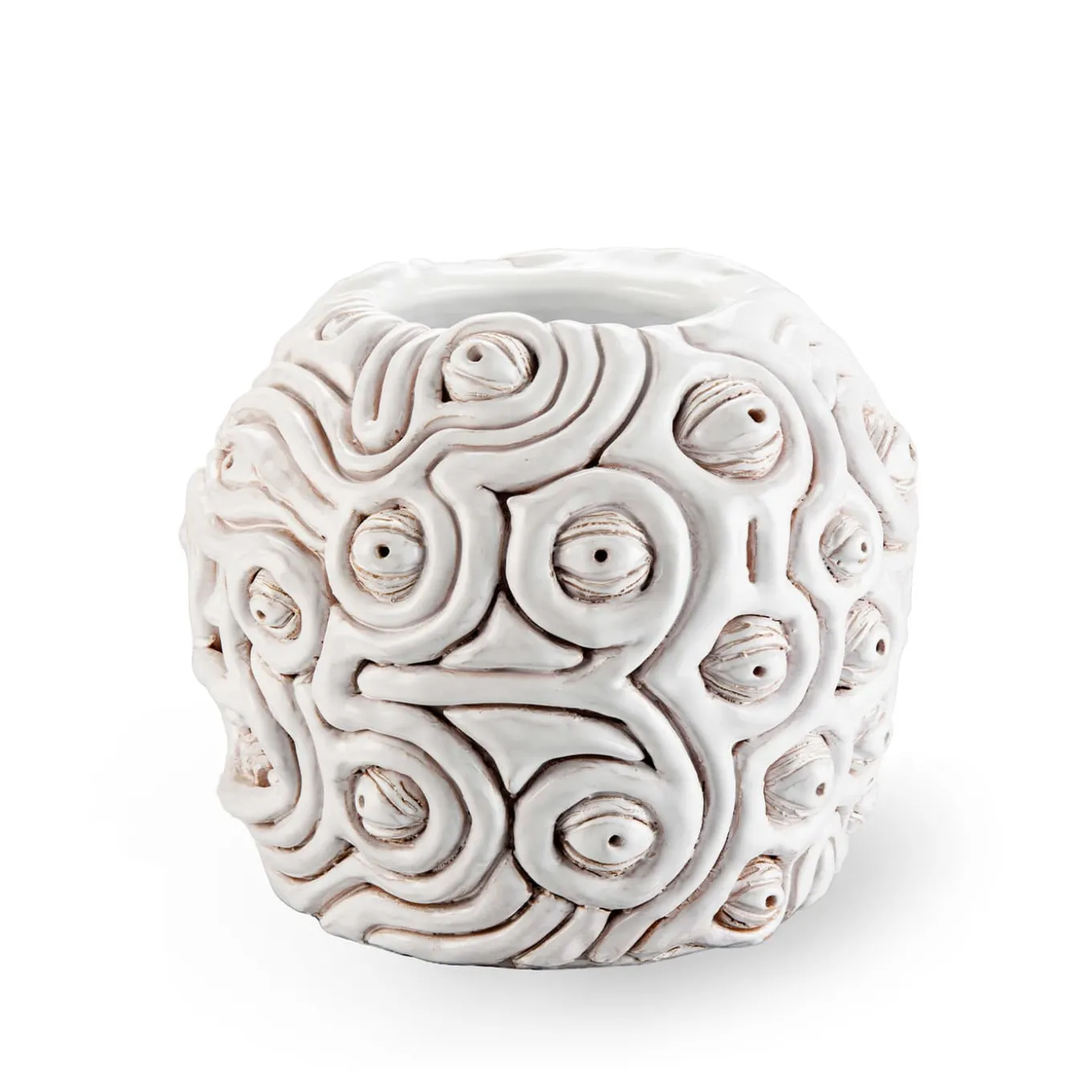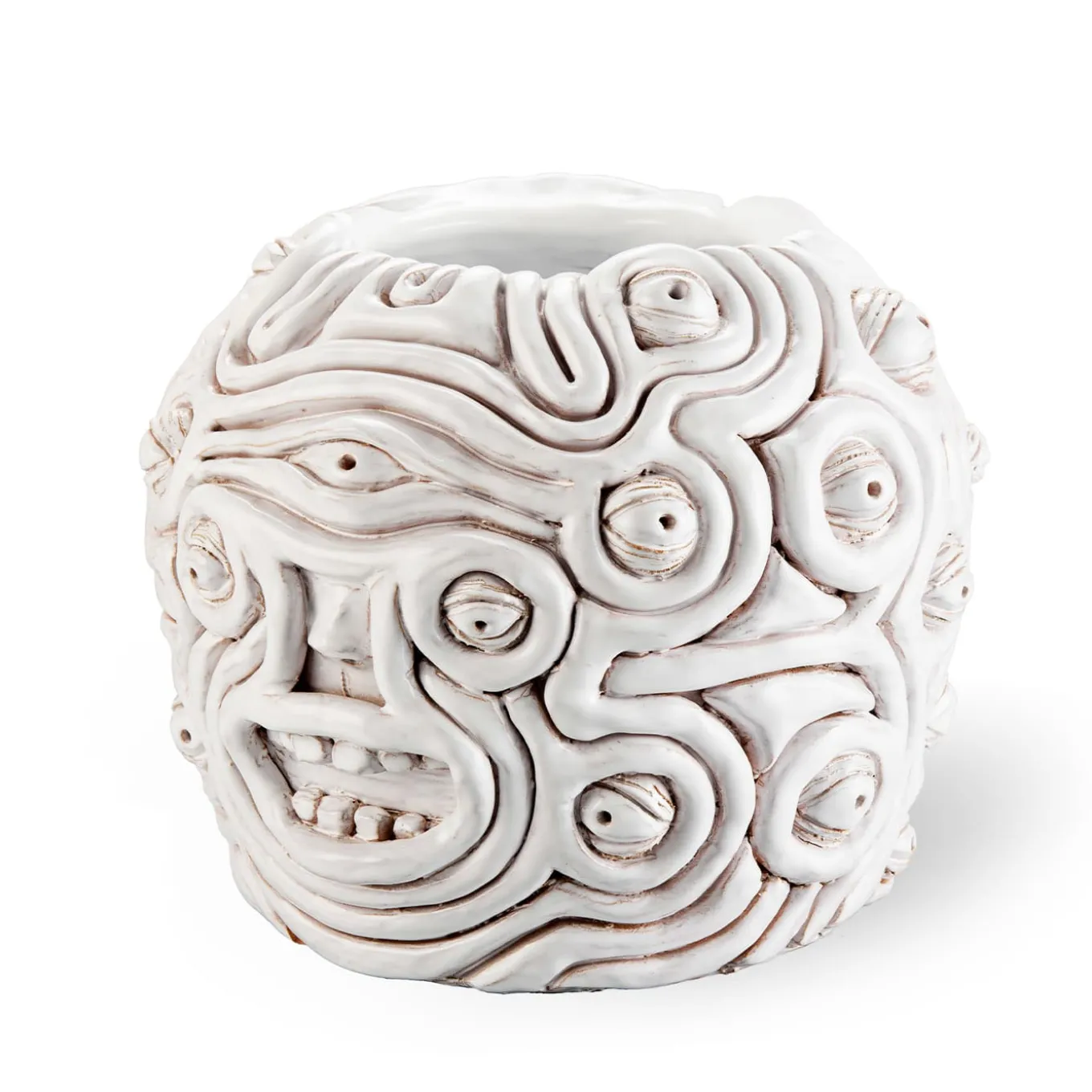 This Eye Freaklab Vase is made entirely by hand with the lathe and modeling technique. Starting from the clay, the piece is dried and fired in the kiln, then decorated with non-toxic glazes, colors, and crystalline for ceramics. Each piece is unique and completely handmade. It can be used as a flower holder, a plant holder, or as a sculpture. The piece can be customized, please contact the Concierge for further information and options.