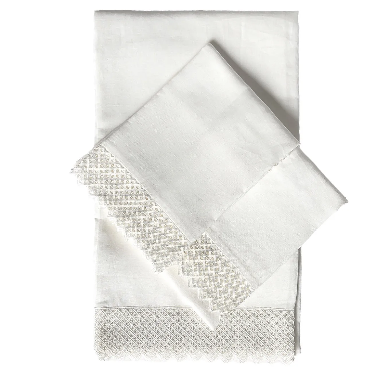 Savour the feeling of sleeping under a crisp, handmade linen top sheet finished with exquisite macramé lace, paired with matching pillowcases. The set includes a fitted sheet that fits mattresses up to 30 cm deep. Made from 100% lightweight Italian linen (165gr/sqm), it is available in different sizes. Perfect for adding elegance and comfort to your bedroom. For other details, please contact the concierge.