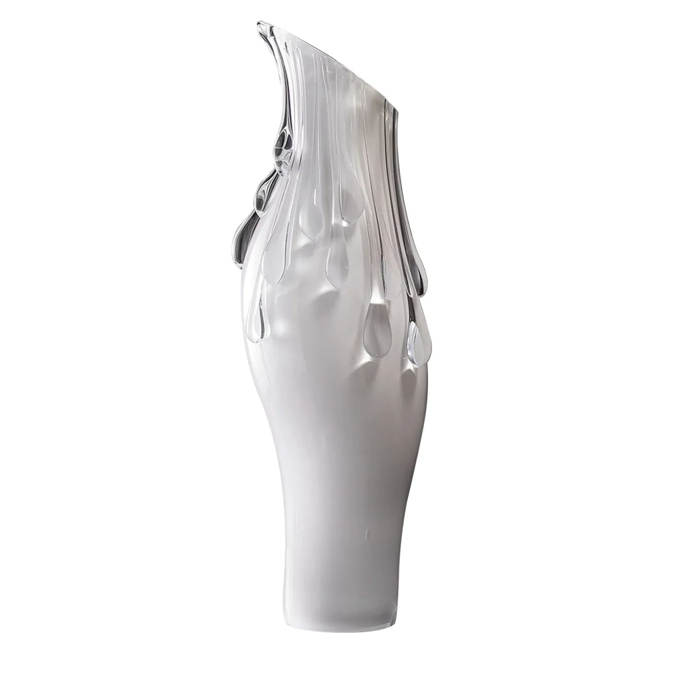 Discover the enchantment of the White Pearls vase, where an opulent display of Murano glass craftsmanship awaits. This artistic marvel showcases overlapping mouth-blown drops on a large, opaline pure white vase. It stands as an ode to the ever-changing horizon, capturing the essence of timeless beauty and artistic finesse.