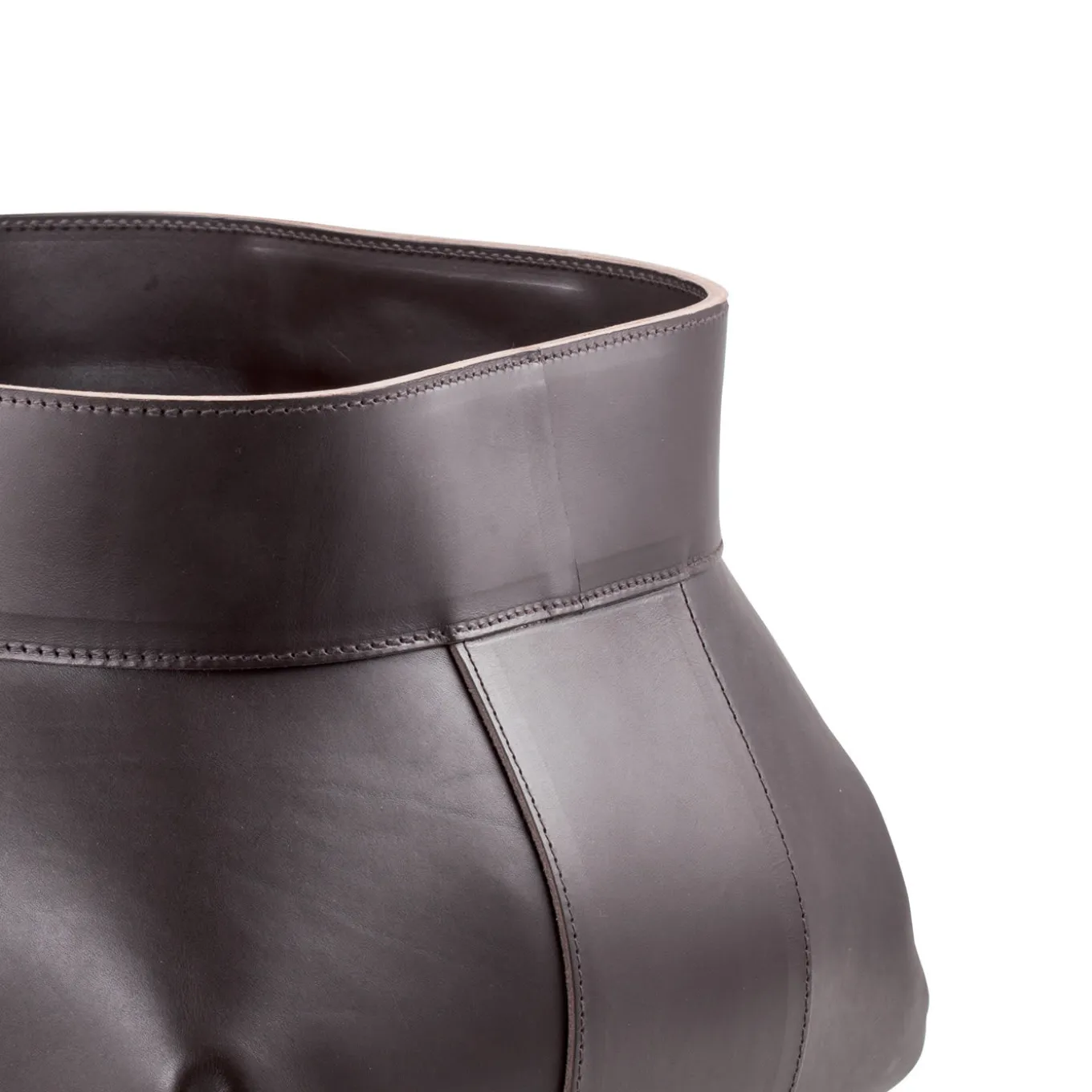 This versatile piece of functional design is a sophisticated and modern basket that will become a precious addition to any home and can be used in a variety of ways, depending on the room it is placed. Its fine saddle leather was dyed using vegetable fibers in a tone of dark brown that will complement any decor. The hidden handles at the top make it easy to transport. It can be used alone or paired with the Woody Large Storage Basket for a dynamic effect.