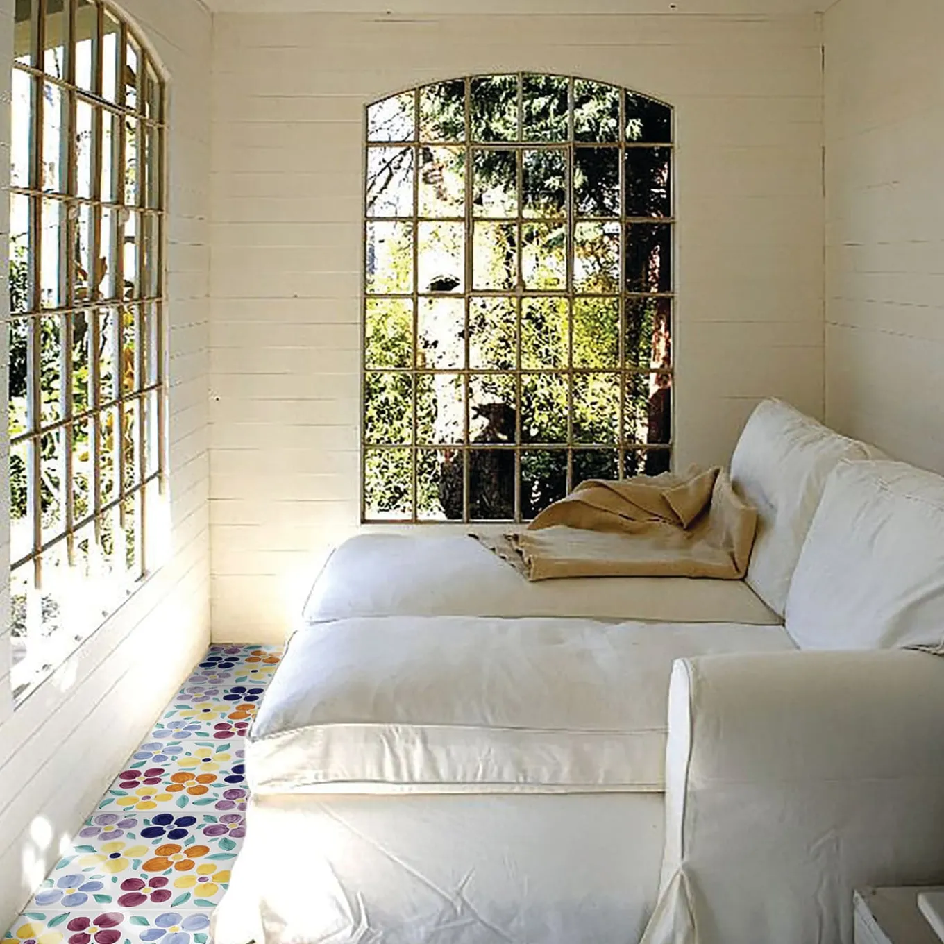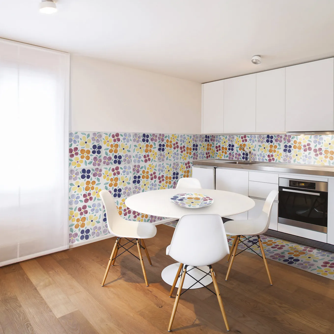 Conjuring images of the picturesque tropical island of Zanzibar, this hand-painted tile features a kaleidoscope image of bold colorful flowers, on a slightly uneven surface. Class PEI 5 rated for durabilty in extra-heavy traffic areas, this tile will elegantly decorate the floors of an elegant private villa or walls of a summer apartment. Please contact the Concierge for additional technical details.