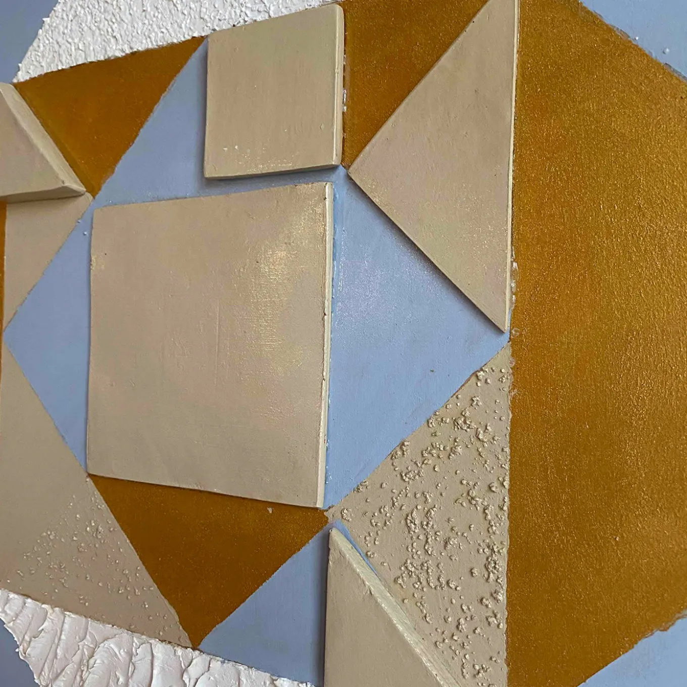 Named after the architectural and religious structure from ancient Mesopotamia, the Ziggurat, this striking design by Mascia Meccani combines a visually captivating wooden decorative panel painted and decorated by hand using paint, stucco, sand, and earthenware with a hand-sculpted ash wood shelf. The highest expression of art and design combined, this piece is unique. It can be reproduced in different sizes but its aesthetic will slightly change due to its handcrafted nature.